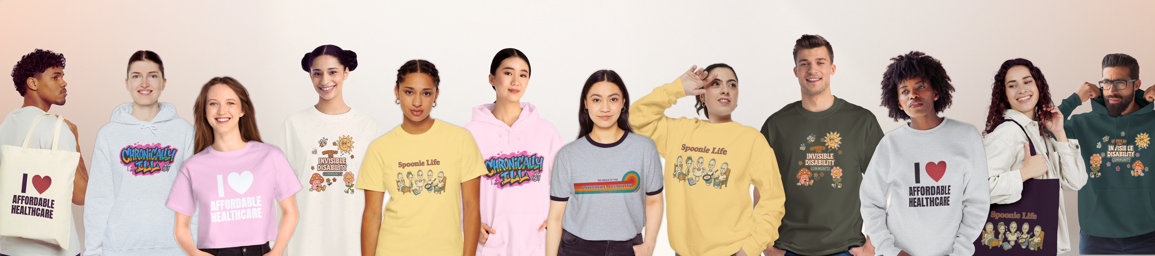 This isn’t just a shop. It’s my story, my family’s story, and the story of millions living with chronic illness. I live with Neuromyelitis Optica (NMO) and Sjögren’s Syndrome. My daughter is a POTS, MCAS, Hyper-mobility warrior. My mother-in-law battled Multiple Sclerosis. Chronic illness is part of our everyday lives, not invisible to us, never imagined, always real.
